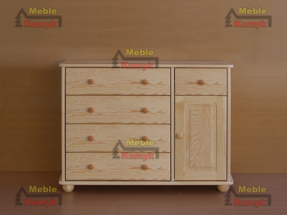 Komoda Klasyczna G-4/3 z czterema dużymi, jedną małą szufladą i drzwiami za którymi znajdują się dwie półki (wnęki).