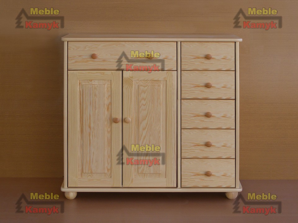 Dostępna w czterech gatunkach drewna: sosnowego, olchowego, bukowego lub dębowego. Inne gatunki drewna i nietypowe rozmiary mebli na zamówienie klienta. Komody dostępne: - wersja na cokole lub na kulach,