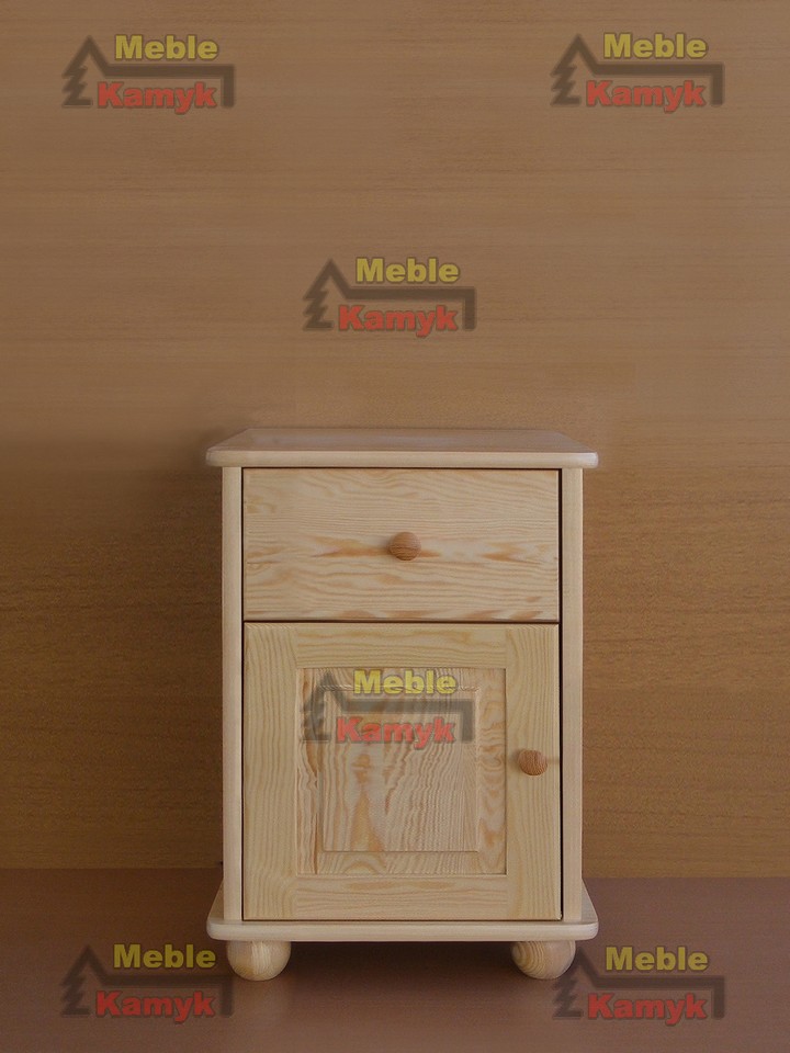 Komoda Klasyczna A-3/2 z jedną szufladą i drzwiami, za którymi znajdują się dwie pólki. Dostępna w czterech gatunkach drewna: sosnowego, olchowego, bukowego lub dębowego. Inne gatunki drewna i nietypowe rozmiary mebli na zamówienie klienta. Komody dostępne: - wersja na cokole lub na kulach,