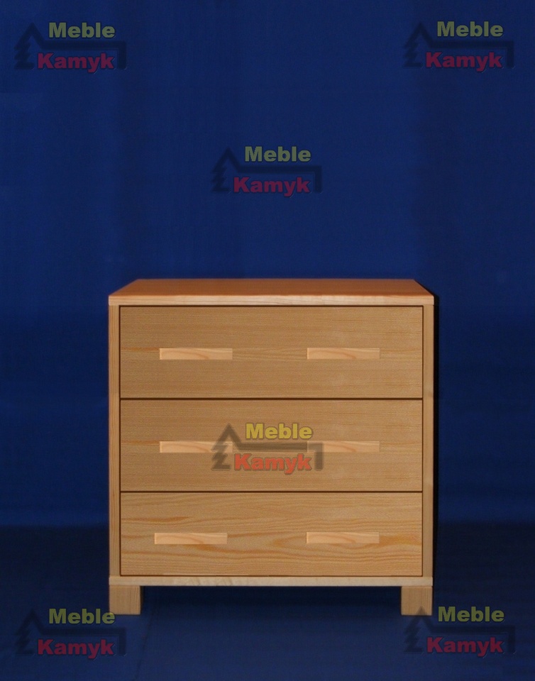 Komoda Sylwia K-3/1 z trzema szufladami. Dostępna w czterech gatunkach drewna: sosnowego, olchowego, bukowego lub dębowego.