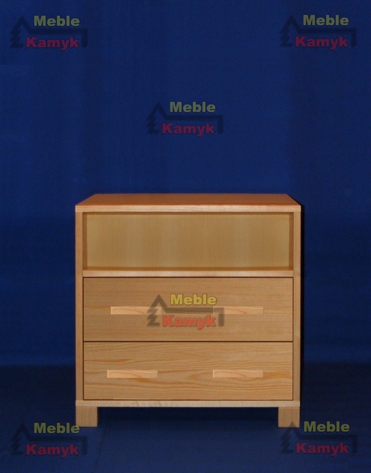 Komoda Sylwia K-3/2 z dwiema szufladami i wnęką. Dostępna w czterech gatunkach drewna: sosnowego, olchowego, bukowego lub dębowego. Inne gatunki drewna i nietypowe rozmiary mebli na zamówienie klienta. Komody dostępne: - wersja na kwadrarowych nogach o wymiarach 6x6 lub na cokole,