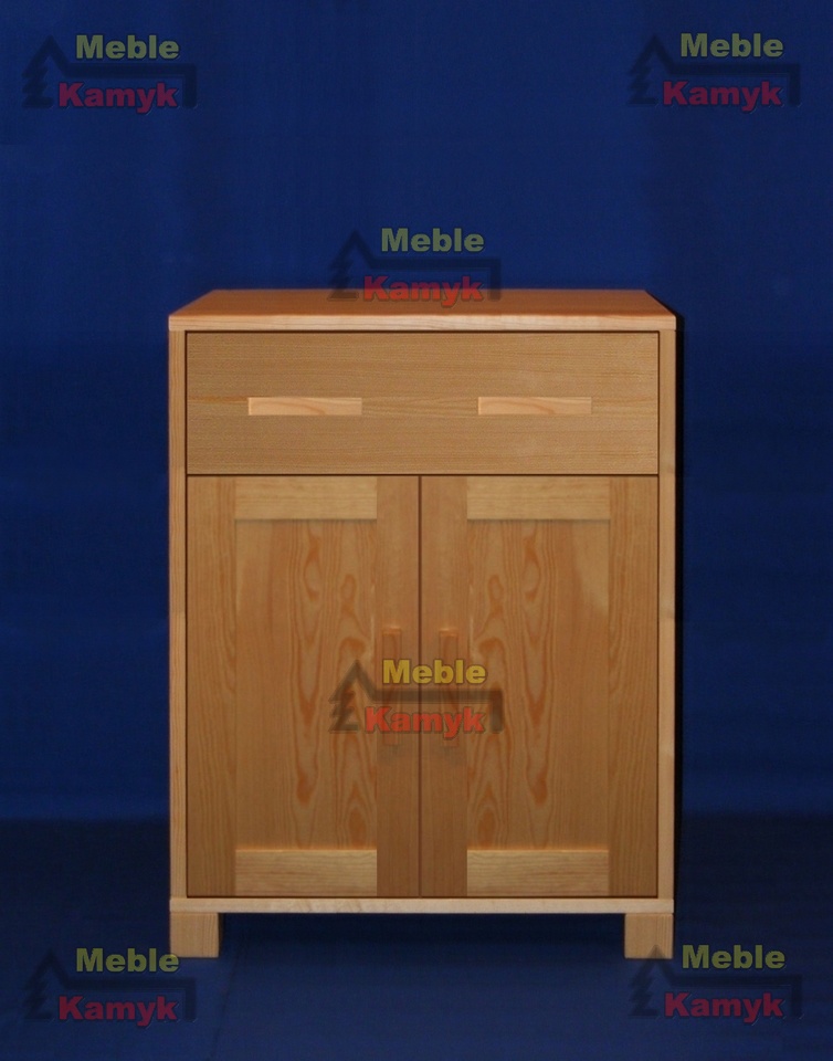 Komoda Sylwia K-4/2 z jedną szufladą i podwójnymi drzwiami, za którymi znajdują się dwie półki. Dostępna w czterech gatunkach drewna: sosnowego, olchowego, bukowego lub dębowego. Inne gatunki drewna i nietypowe rozmiary mebli na zamówienie klienta. Komody dostępne: - wersja na kwadrarowych nogach o wymiarach 6x6 lub na cokole,