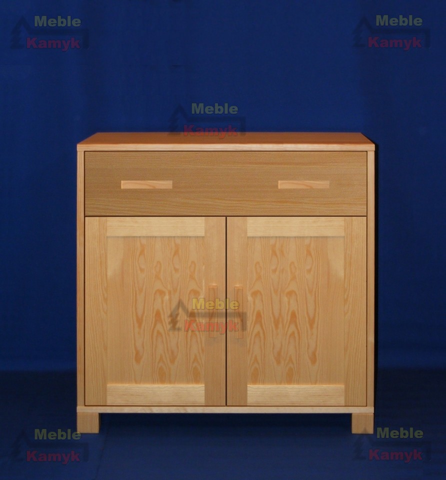 Komoda Sylwia B-4/2 z jedną dużą szufladą i podwójnymi drzwiami, za którymi znajdują się dwie półki (wnęki).