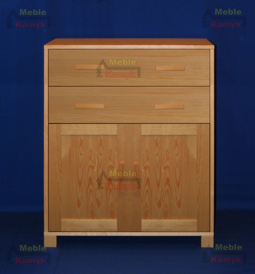 Komoda Sylwia B-5/4 z dwiema dużymi szufladami i podwójnymi drzwiami, za którymi znajdują się dwie półki (wnęki).