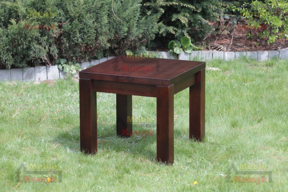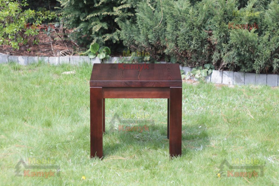 Widoczna na zdjęciu ława wykonana z drewna sosnowego w kolorze nr. 6 (ciemny orzech), o rozmiarach wys/dł/gł 55x60x60.