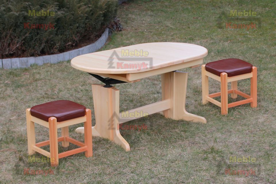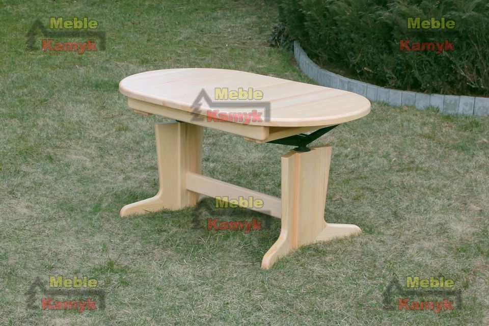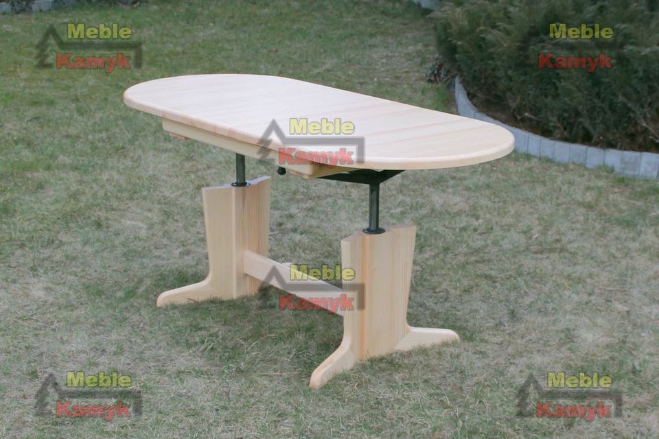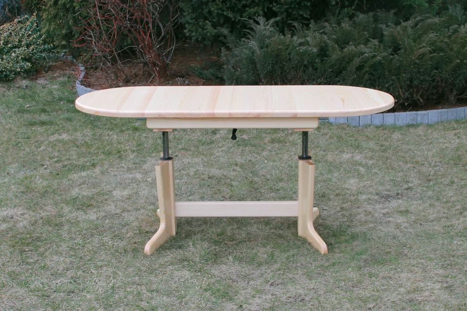 Ławostół Rozkładany "Klasyczny Owalny" z regulowaną wysokością, rozsuwanym blatem i wkładką chowaną do środka. Wykonany z drewna sosnowego, olchowego, jesionowego lub dębowego. Grubość blatu 3-3,2 cm. Charakteryzuję się nowoczesnym wzornictwem, wysoką jakością, trwałością i możliwością użytkowania jako stołu lub ławy. Ławostoły dostępne z blatem: