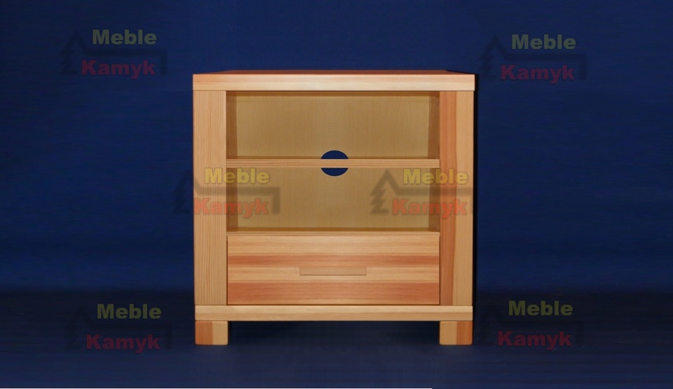 Stolik Tina RTV 3-2 z dwiema wnękami i szufladą. Dostępny w szerokościach 78 i 98cm, oraz w czterech gatunkach drewna: sosnowego, olchowego, bukowego lub dębowego. Inne gatunki drewna i nietypowe rozmiary mebli na zamówienie klienta.