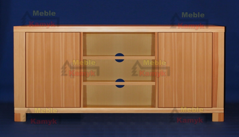 Stolik Tina RTV 3-8 z trzema wnękami i dwoma drzwiami. Dostępny w szerokościach 130, 150cm, oraz w czterech gatunkach drewna: sosnowego, olchowego, bukowego lub dębowego. Inne gatunki drewna i nietypowe rozmiary mebli na zamówienie klienta.