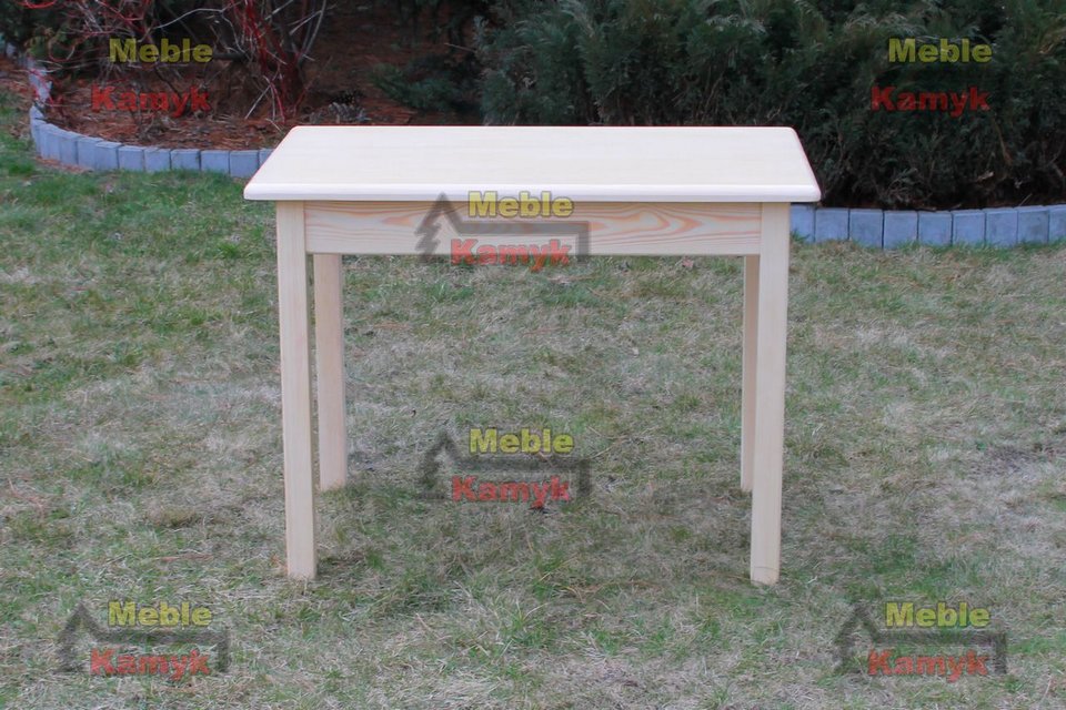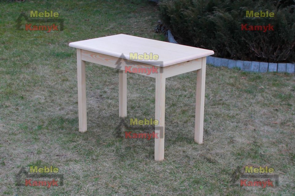 Stół Kuchenny. Wykonany z drewna sosnowego. Charakteryzuję się klasyczną linią wzorniczą, wysoką jakością, trwałością. Blat dostępny w kształcie kwadratu i prostokąta o grubości 2.5 cm, nogi o przekroju 5x5cm. Możliwość zamówienia w wersji z szufladą. Wszystkie nasze stoły i ławy barwimy w 18 kolorach, co daje możliwość dobrania ich niemal do każdego wnętrza. Dostępne kolory to: - sosna lakierowana,